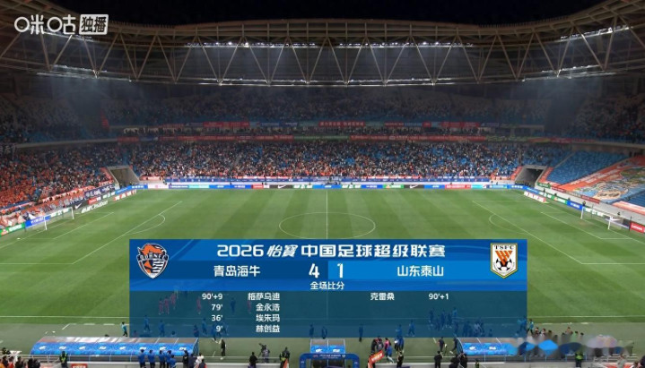 4月26日,中超第8轮献技“皆鲁德比”,青岛海牛镇守青岛芳华足球场迎战山东泰山。最终,海牛以4-1大捷敌手,获取赛季第二场得胜,积分得胜转正。