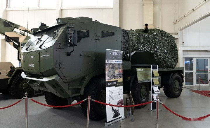 AM120自行迫击炮,是斯洛伐克ZTS-Špecial公司在太脱拉815-7型6X6轮式底盘上,相接可360度旋转的Puma L2装甲炮塔,容纳了一门120毫米后膛装填全自动迫击炮,全重约20吨。据称,该炮射速可达15-20发/分钟,车内弹仓容量为60发,最大射程8600米,最小射程504米。