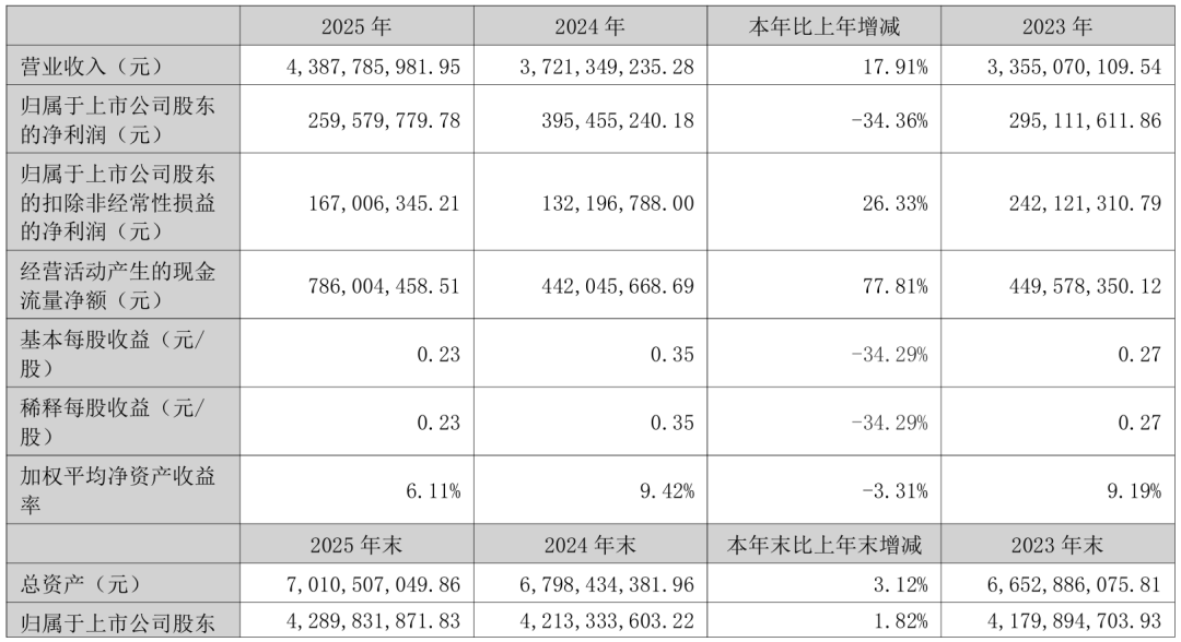 4月12日,海念念科发布2025年功绩,全年营业总收入约为东说念主民币43.878亿元,较客岁同期(37.213亿元)增长17.91%;包摄于上市公司股东的净利润约为东说念主民币2.596亿元,较客岁同期(3.955亿元)下落34.36%;包摄于上市公司股东的扣除非不息性损益的净利润约为东说念主民币1.670亿元,较客岁同期(1.322亿元)增长26.33%;谋略当作产生的现款流量净额约为东说念主民币7.860亿元,较客岁同期(4.420亿元)增长77.81%。