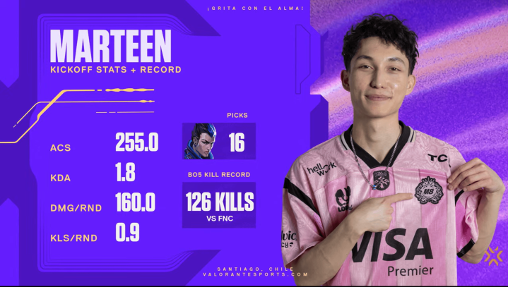 marteen:ACS255、KDA1.8、每回合均伤160、每回合均杀0.9,时时彩app曾在对阵FNC比赛中拿下126的击杀纪录。