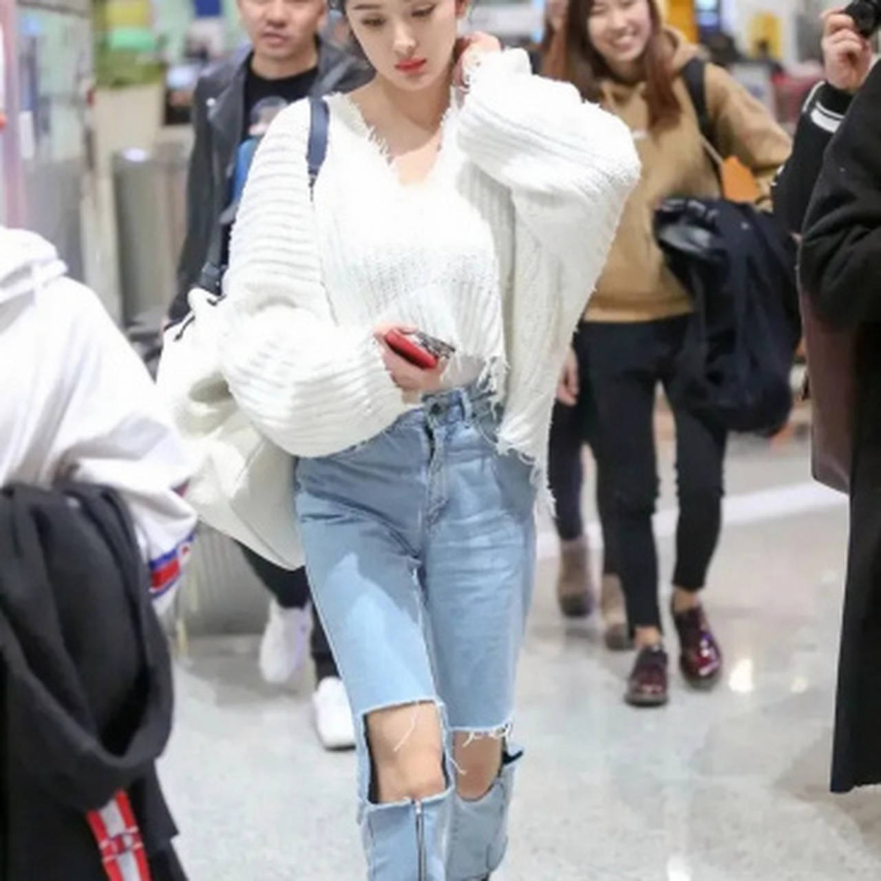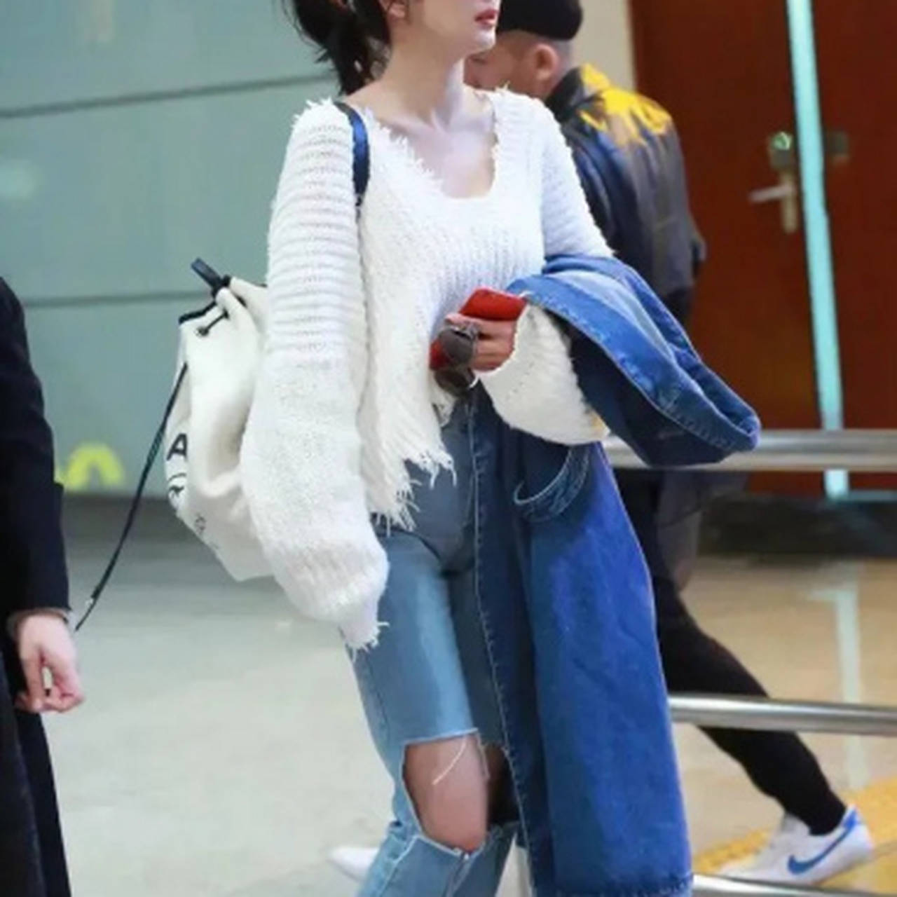 35岁杨幂素颜破洞裤现身机场!不装了的她反而圈粉遍及?凌晨五点的机场大厅,莫得细腻眼妆,莫得高光滤镜,致使连口红都没涂,却让#杨幂素颜景象#和#破洞裤yyds#两个话题三小时内冲上热搜前五。