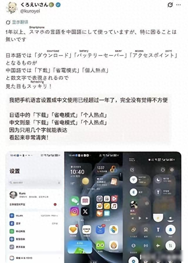 从四月初开动,日本外交平台上短暂冒出许多截图,手机里的说话选项被改成简体汉文,主屏幕的图标排得整整皆皆,见知栏也打理得很干净,这些东谈主原本不是中国东谈主,以致统共不懂汉文,就心爱这么确立,他们发帖说眼睛嗅觉自在多了,还有东谈主合计日语界面像一堆乱码挤在一皆,看深刻异常累,这个话题很快火起来,几天之内阅读量跨越一亿,还登上了中国和日本的热搜榜。